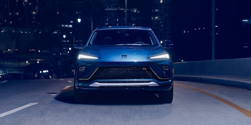 Les phares avant triangulaires complètent le front audacieux du véhicule pour produire le nouveau style Buick, établi en 2024.